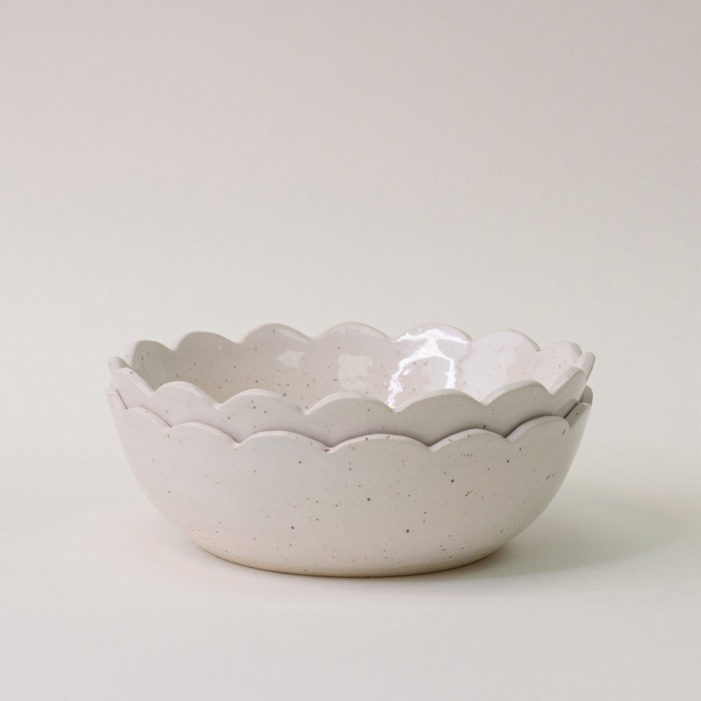 Handmade Ceramic 'Speckled White' Scalloped Bowl